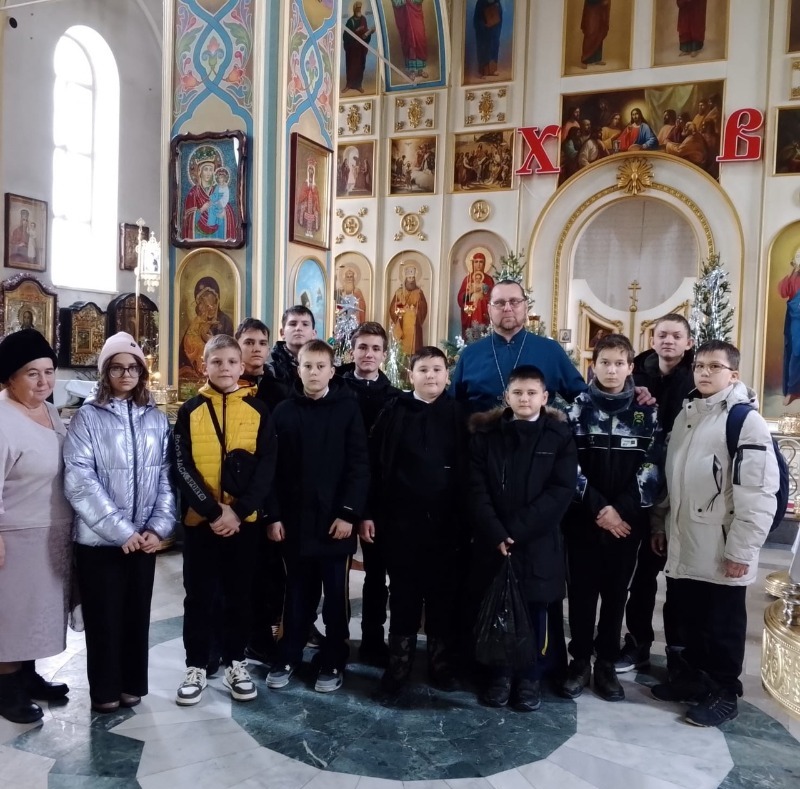 Иерей Александр также упомянул о церквях, ранее существовавших на территории села. Войдя внутрь храма, ребята увидели красивые росписи и иконы, созданные местными мастерами. Особое впечатление по своей красоте на них произвёл иконостас. Казачата познакомились и с иконами, обретаемыми в храме. С большим интересом слушали они рассказ об иконе Серафима Саровского, привезённой из Дивеева, о житии святых, в лики которых всматривались с особым трепетом. У иконы святого преподобного Сергия Радонежского юные христиане помолились об успехах в учёбе и поставили свечи.