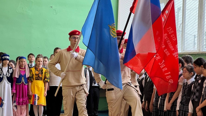 По случаю открытия Года единства народов России в Красноярской школе №1 состоялась торжественная линейка. Учреждение широко распахнуло двери своего спортивного зала, приглашая ребят стать свидетелями такого важного события. Открытие ознаменовалось внесением государственных символов: флага Российской Федерации, Астраханской области и знамени Победы. Эта почётная миссия была доверена лучшим представителям школьного сообщества – юнармейцам Эльмару Батыргазиеву, Радмиру Маушеву и Денису Журбину. Величественным аккордом зазвучали мелодии Государственного гимна России и Астраханской области, наполнив пространство чувством глубокой причастности и гордости.