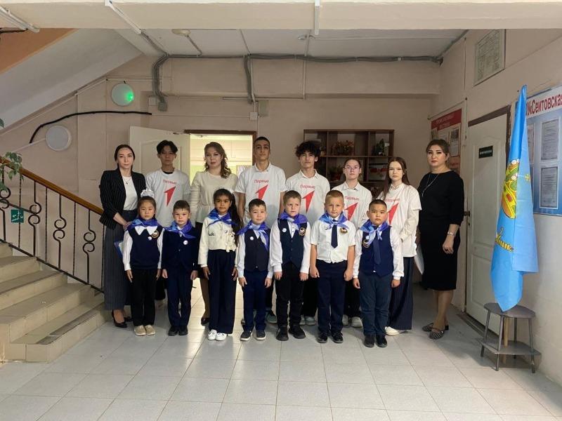В не менее торжественной обстановке прошло посвящение 12 пятиклассников и шестиклассников этой школы в ряды «Движения Первых». Теперь дети с гордостью носят нагрудные значки и галстуки, как символ чести и достоинства. Напутственные слова прозвучали от куратора первичного отделения Движения Сеитовской ООШ Айнагуль Козыревой.