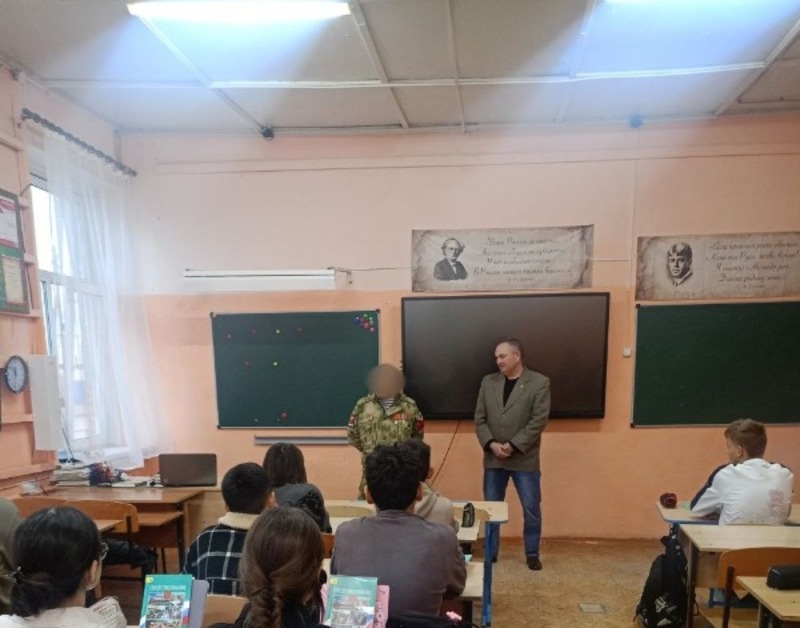 В рамках проекта «Классные встречи» и Всероссийской акции «Диалоги с Героями» в стенах Новоурусовской школы состоялось патриотическое мероприятие. На него пригласили отца одного из учеников. Мужчина проходит службу в зоне проведения специальной военной операции и стоит на защите Родины.
