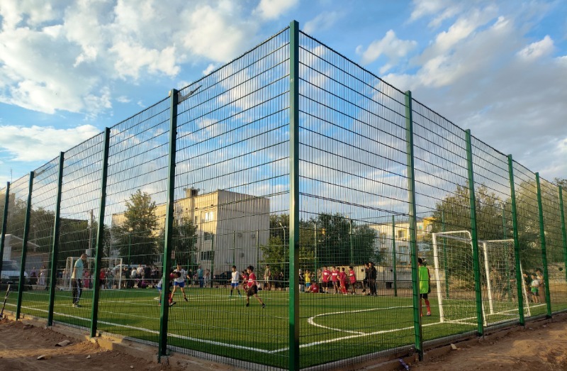 Новое футбольное поле оснащено современным покрытием из высококачественного искусственного газона, обеспечивающего комфорт и безопасность игроков. Полностью обустроенная инфраструктура включает в себя осветительные приборы для вечерних матчей, скамейки для зрителей, безопасные ограждения, предотвращающие выход мяча за пределы игровой зоны. Особое внимание уделено вопросам безопасности и комфорта участников спортивных мероприятий.