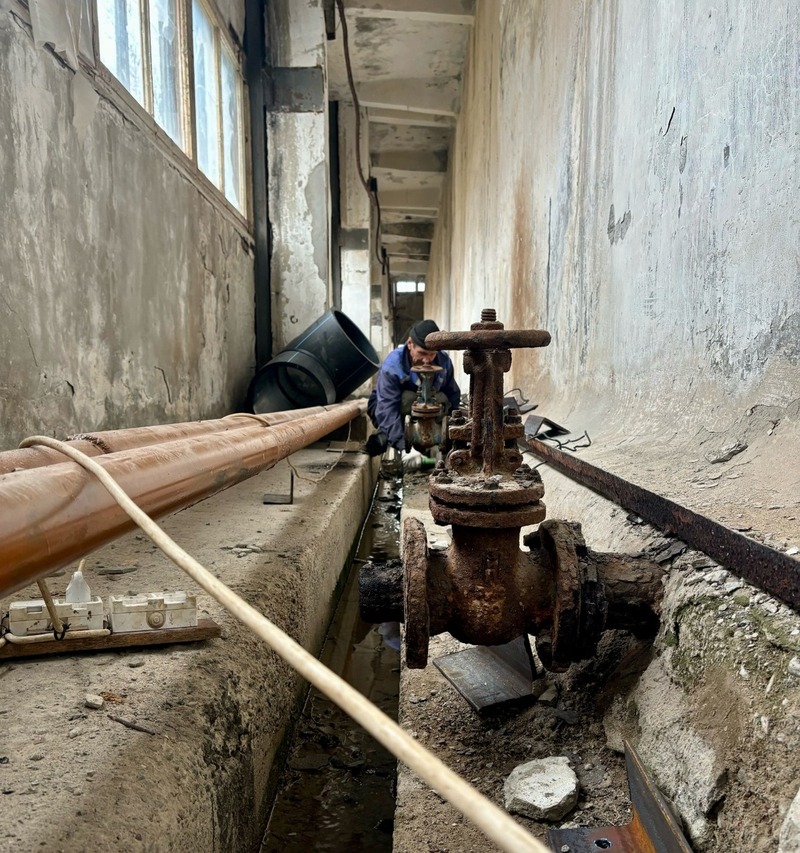 Сегодня продолжается очередной важный этап ремонтных работ. Подрядчик ООО «Региональный стандарт» проводит мероприятия по замене элементов трубопровода системы отчистки воды. На эти цели выделили более 16 млн руб. На текущий момент бригада приступила к алмазному сверлению отверстий фильтров для установки и монтажа подающих труб в фильтры.