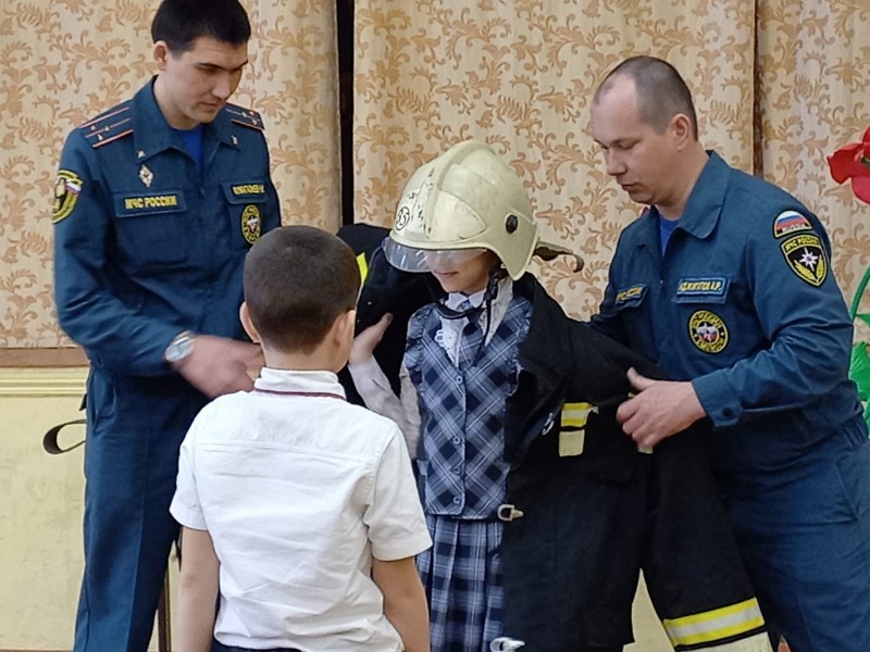 Встреча вызвала неподдельный интерес у детей. Они с удовольствием примеряли боевую экипировку спасателей, отгадывали загадки. По окончании открытого урока спасатели ответили на вопросы ребят, раздали информационные памятки по правилам пожарной безопасности.