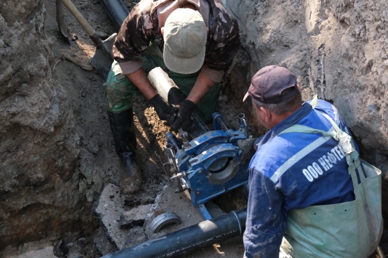 Напомним, что подрядная организация проложила новый пластиковый водовод протяжённостью порядка 1500 м. Сейчас работники Водоканала занимаются переврезкой пересекающих его линий водопровода. Так, недавно провели подключение на пересечении с ул. Ленинской. Завершающим этапом этого масштабного проекта станет переподключение абонентов к новой системе.