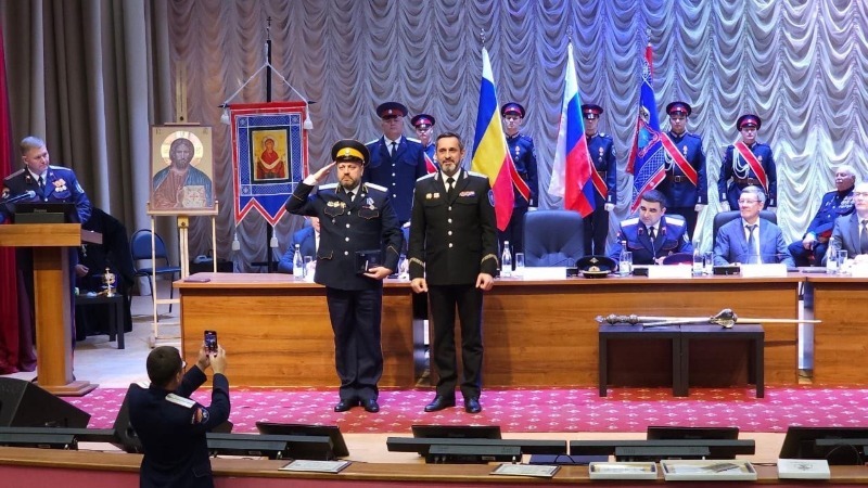 После приветствия гостей состоялась церемония награждениями казаков. Среди тех, кого отметили, был и атаман красноярских станичников, казачий полковник Алексей Хаюров. Ему вручили медаль «За вклад в развитие казачьего образования и патриотического воспитания».