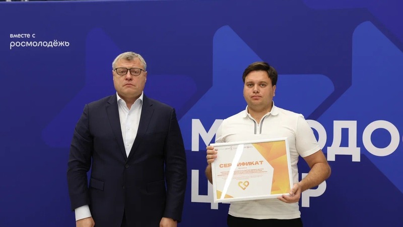В рамках проведения региональной межведомственной комиссии по вопросам реализации молодёжной политики и совета по взаимодействию с российским движением детей и молодёжи «Движение Первых» губернатор области Игорь Бабушкин вручил директору МКУ «Центр по молодёжной политике, физической культуре и спорту Красноярского района» Дмитрию Калмыкову сертификат на получение офисной техники, мебели, необходимой для волонтёров экипировки и канцтоваров. Это стало возможным благодаря реализации нацпроекта «Молодёжь и дети».