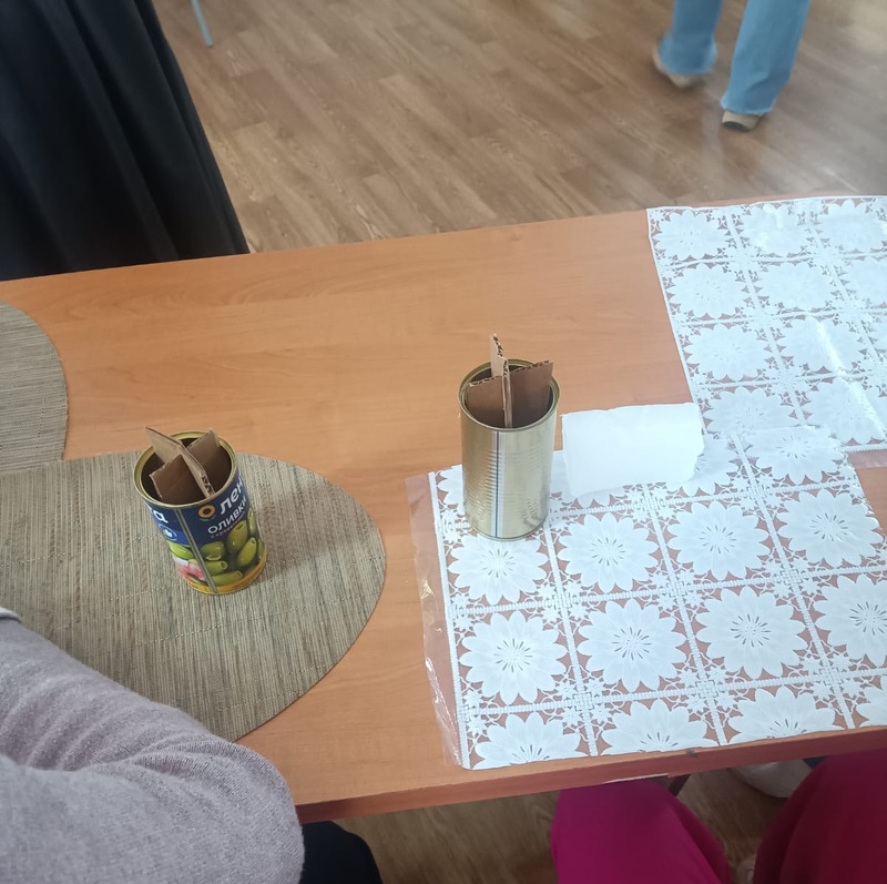 Пустые консервные банки, гофрированный картон – из этих нехитрых составляющих получились необходимые в быту солдат приспособления. Завершив работу, участники мероприятия решили написать своим землякам, находящимся в зоне проведения СВО, письма, в которых поделились теплотой своей души и тёплыми словами поддержали воинов.