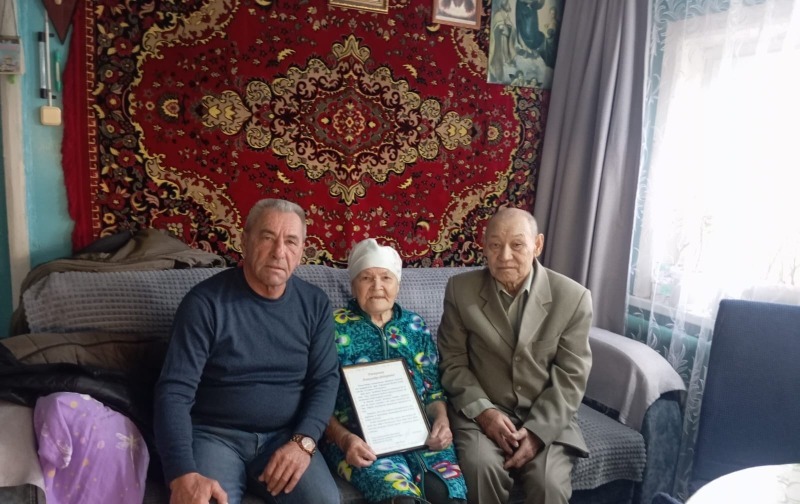 С этим замечательным событием ее лично поздравили управляющий территорией №2 Алексей Бусаргин и член общественного Совета округа, председатель Совета ветеранов посёлка Верхний Бузан Мурат Габдушев.