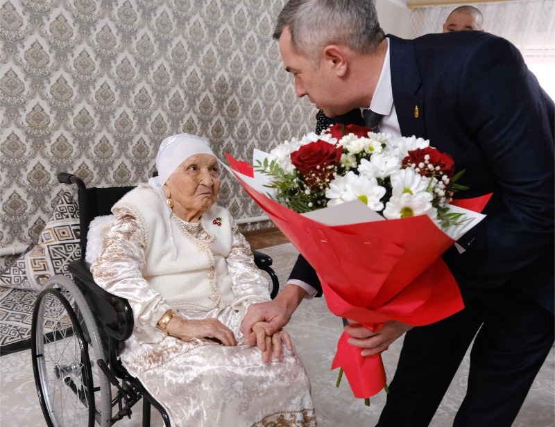 Глава округа Сергей Светлов совместно с председателем районного Совета ветеранов войны, труда, Вооружённых Сил и правоохранительных органов Владимиром Шатохиным и управляющим территориальным подразделением №4 Эльманом Такиевым поздравили именинницу с таким солидным юбилеем и пожелали долгожительнице крепкого здоровья, тепла родных и близких, заботы и уважения окружающих.